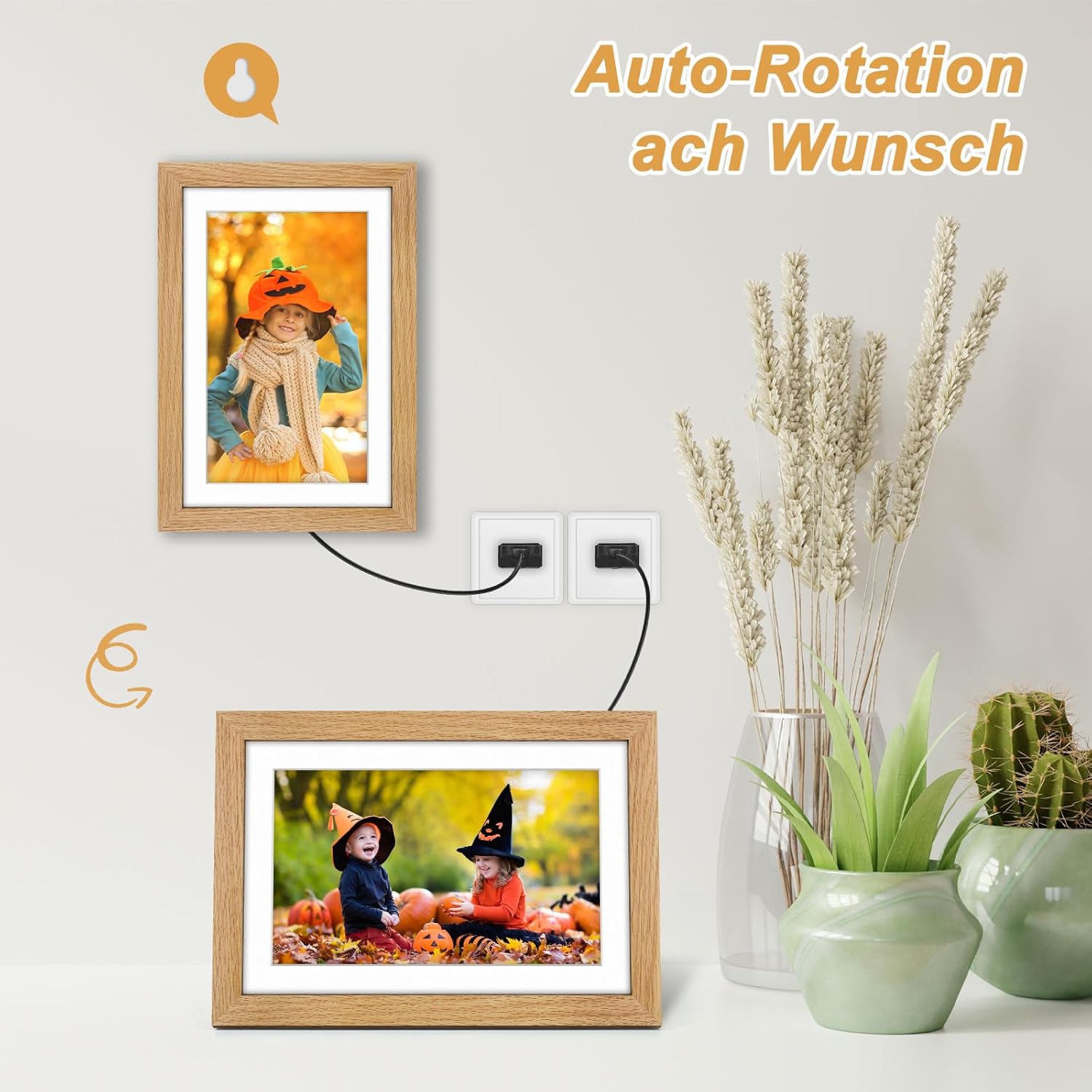 Multifunktionales digitales Bilderrahmen: Der digitale Bildrahmen von Apveelveer digital ist so konzipiert, dass sie sich an Ihre Einstellungen anpassen. Es dreht sich automatisch für die Landschafts- oder Porträtausrichtung, und die automatische Drehfunktion passt auch die Ausrichtung der Fotos an, sodass sie perfekt in den Rahmen passen. Genießen Sie die Bequemlichkeit verschiedener anpassbarer Einstellungen, einschließlich Auto-Play, Bildzoom, Ausblenden/Verblassen, Untertitel, verstellbare Helligkeit und Schlafmodus.