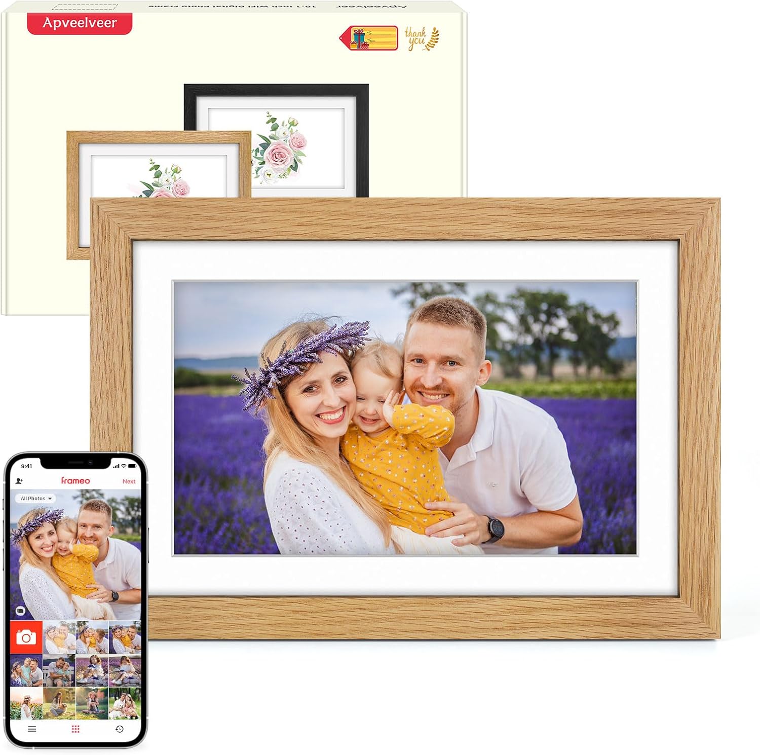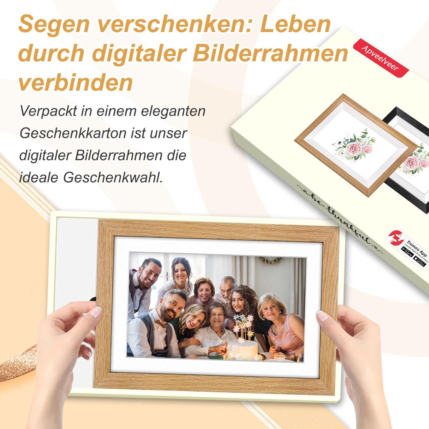 Apveelveer möchte Sie und Ihre Familie glücklich machen, indem Sie über unseren digitalen Fotorahmen glückliche Momente teilen. Wir hoffen, dass es Sie und Ihre Familie näher zueinander bringt. Ausgestattet mit der neuesten Display -Technologie erwecken digitale Fotorahmen von ApveElveer Ihre Fotos zum Leben.