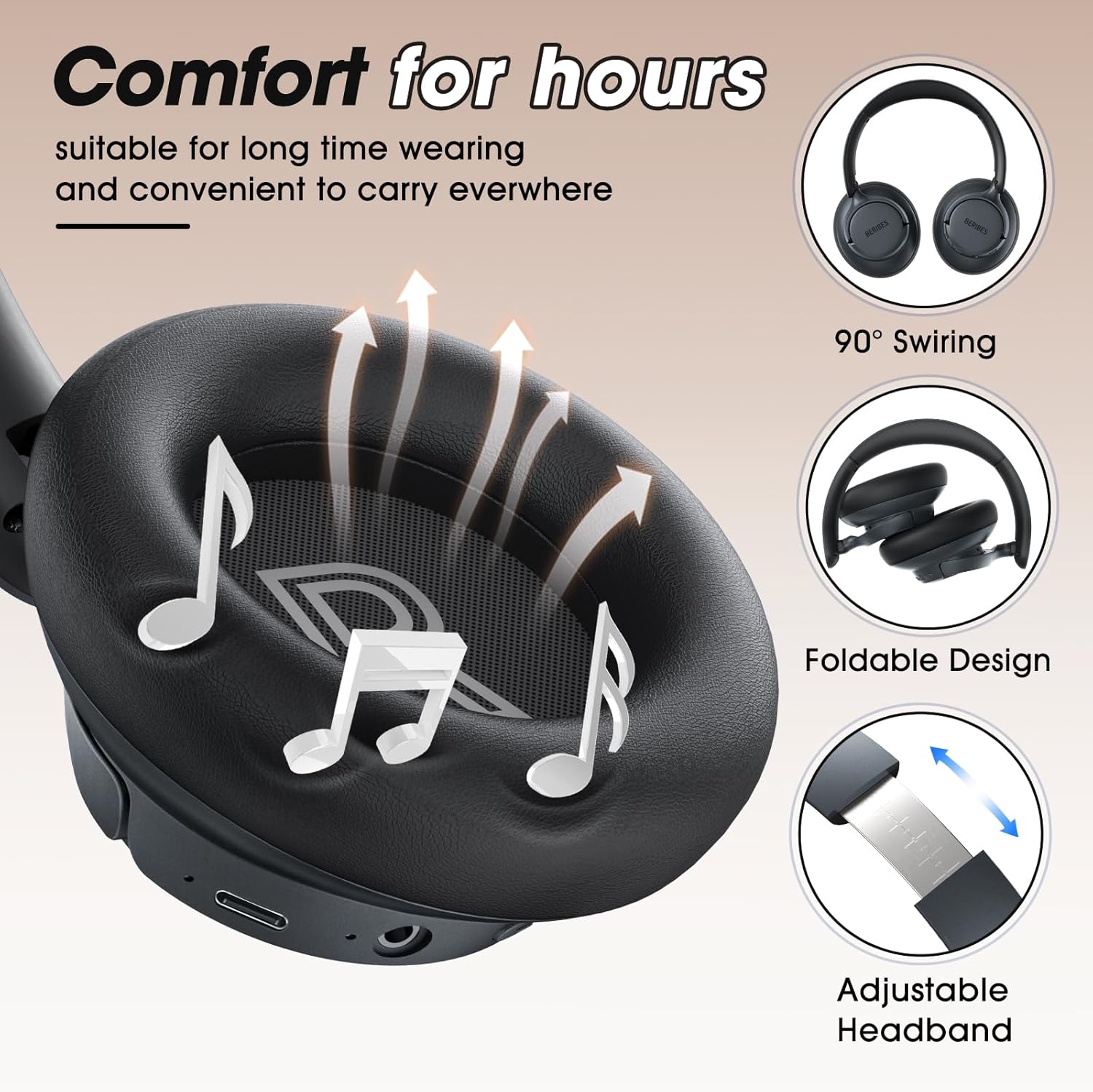 Hi-RES-Audio-Über Ohr-Bluetooth-Kopfhörer mit Geräuschstündungsfunktion Dynamic 40 mm Treiber dieser Kopfhörer mit Geräuschunterbrechungen. Überlegene Geräusche mit kristallklarer Klarheit und was detaillierte Klang und reichhaltige Rufe sind sehr klar und natürlich. Hi-Res-Audio-Kopfhörer Wireless über 5.3 Bluetooth bieten stärkere Bass, reichhaltigere Details, breitere Dynamik und einen Sound näher am Original.