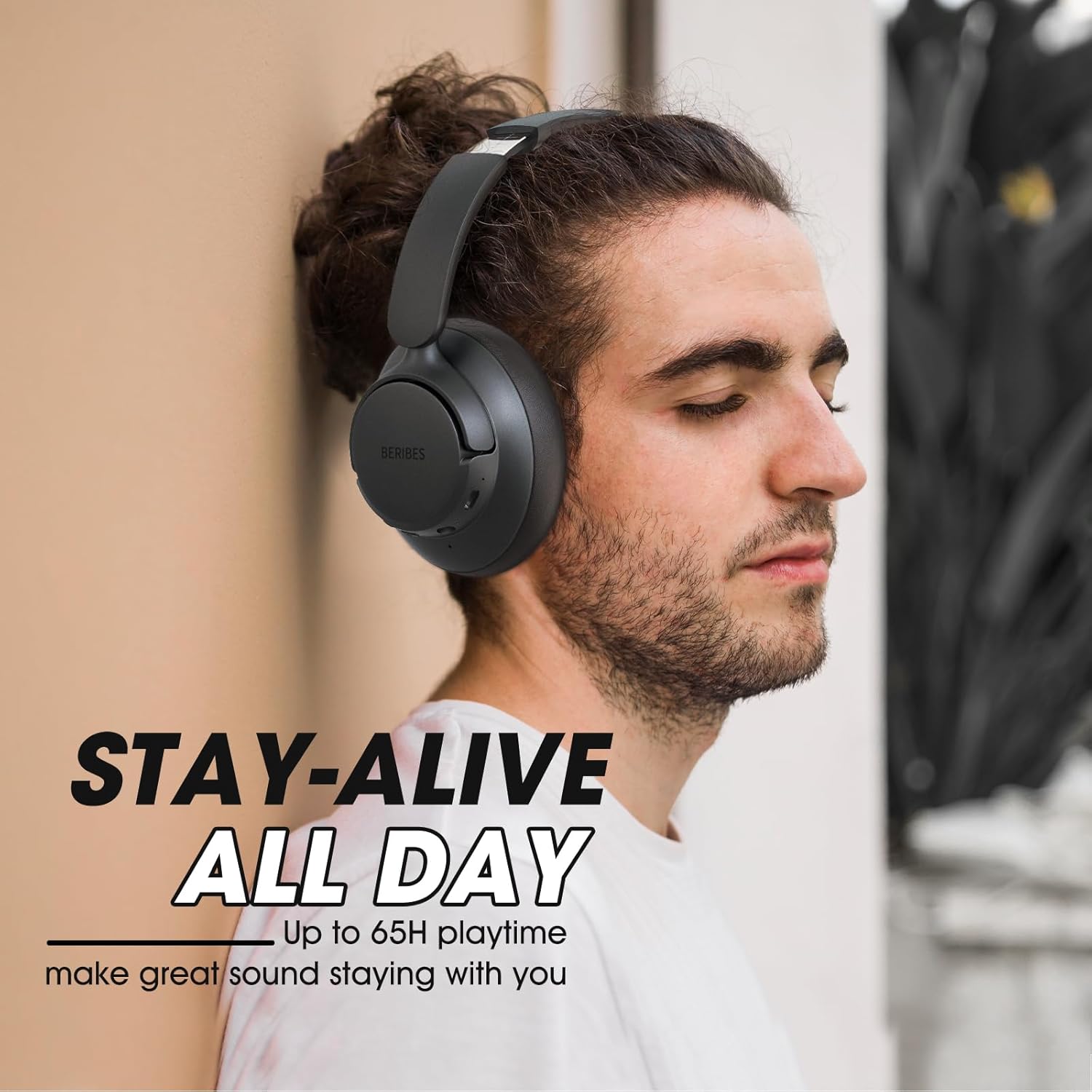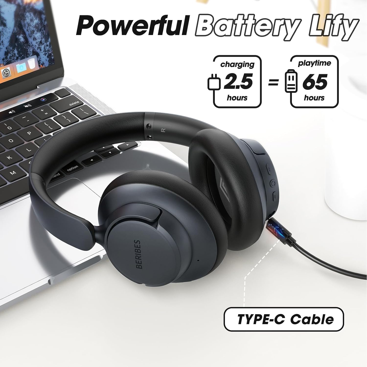 Beribes Bluetooth-Kopfhörer Over-Ear, aktive Kopfhörer für Geräuschstündung mit Mikrofon, transparenten Modi, 70-Stunden