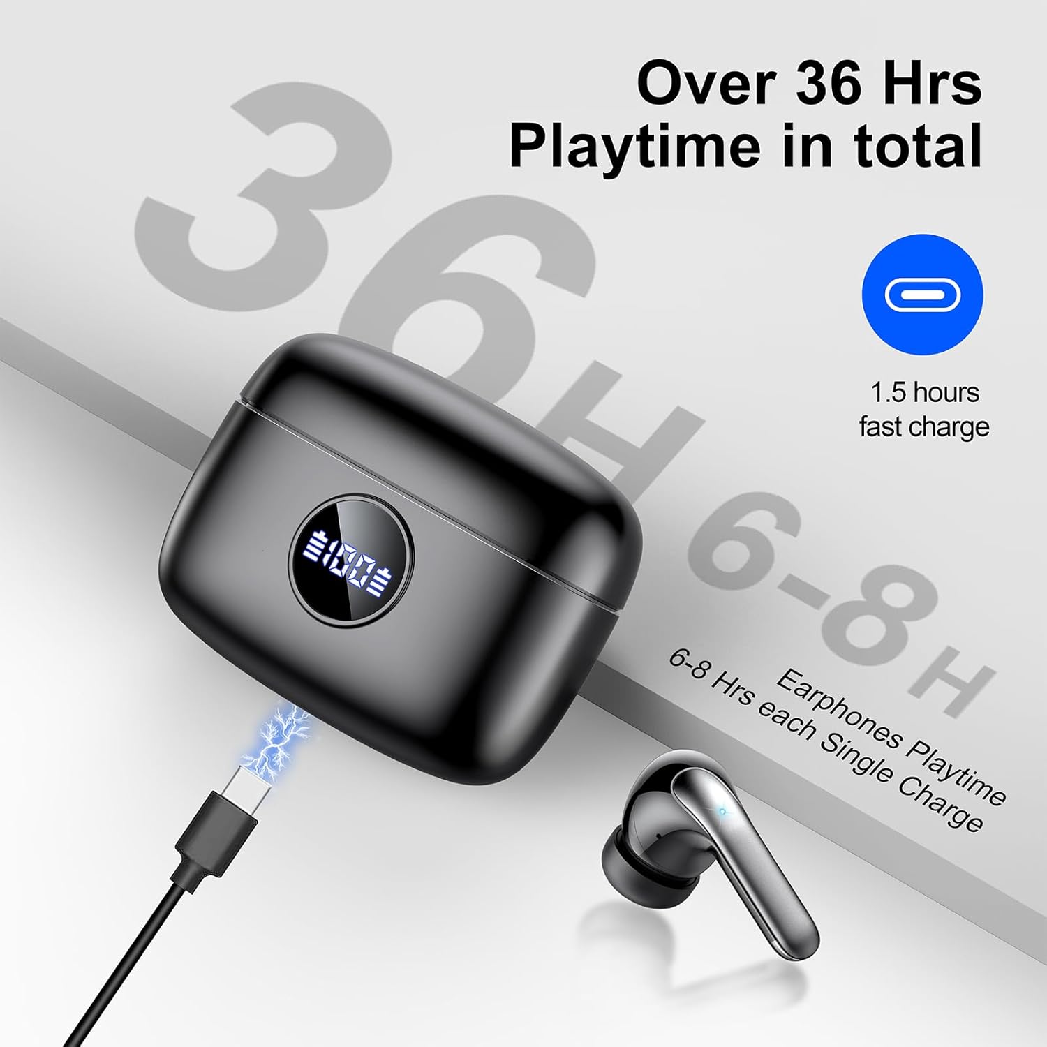 In-Ear-Kopfhörer funktionieren 7 Stunden auf einer einzigen Ladung, bis zu 60 Stunden mit einer Ladebox. Mit einer schnellen Lade-Typ-C-Schnittstelle sind die drahtlosen Bluetooth-Ohrhörer nur 1 Stunde benötigt. Funktionen mit intelligentem LED -Digitalanzeigen können Sie den Akkuverbrauch sowohl für Bluetooth -Kopfhörer im Ohr als auch an der Ladekoffer leicht kennen, damit Sie die Zeit zum Aufladen meistern können. Mit der leistungsstarken Batterie können Sie den ganzen Tag zuhören.