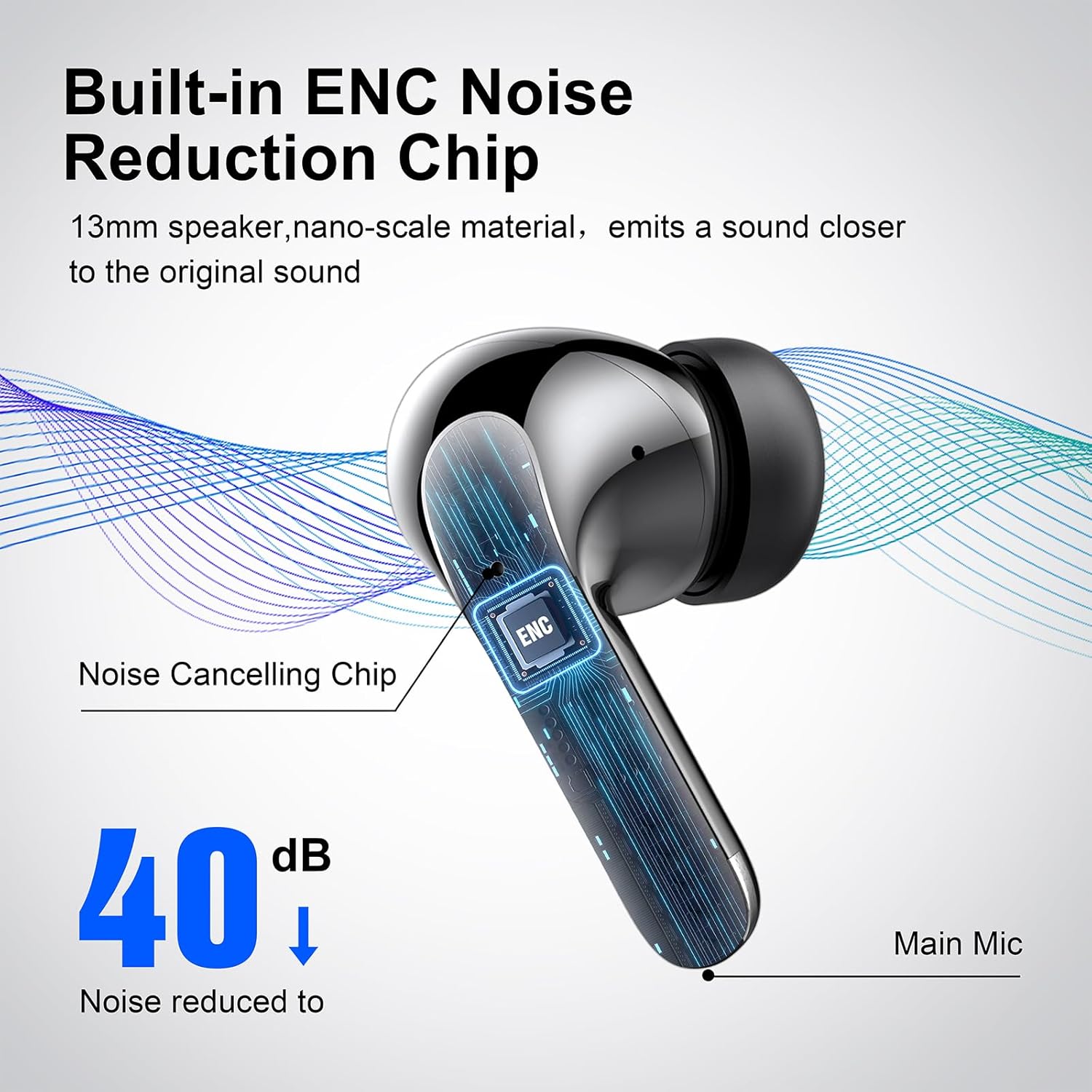 Wireless Ohrhörer mit 13 -mm -Schwingungsmembran- und AAC/SBC -Audio -Codierungstechnologie, was zu einem ausreichend starken Bass und einer natürlichen Verbindung zur mittleren und hohen Frequenzen führt. Ohrhörer mit Geräuschstündung integriertem MIC Clear und (CVC) 8.0-Rauschunterdrückungstechnologie, die Ihre Stimme effektiv vom Umgebungsgeräusch trennt, macht die Kommunikation klar, perfekt für Videoanrufe oder Online-Besprechungen.