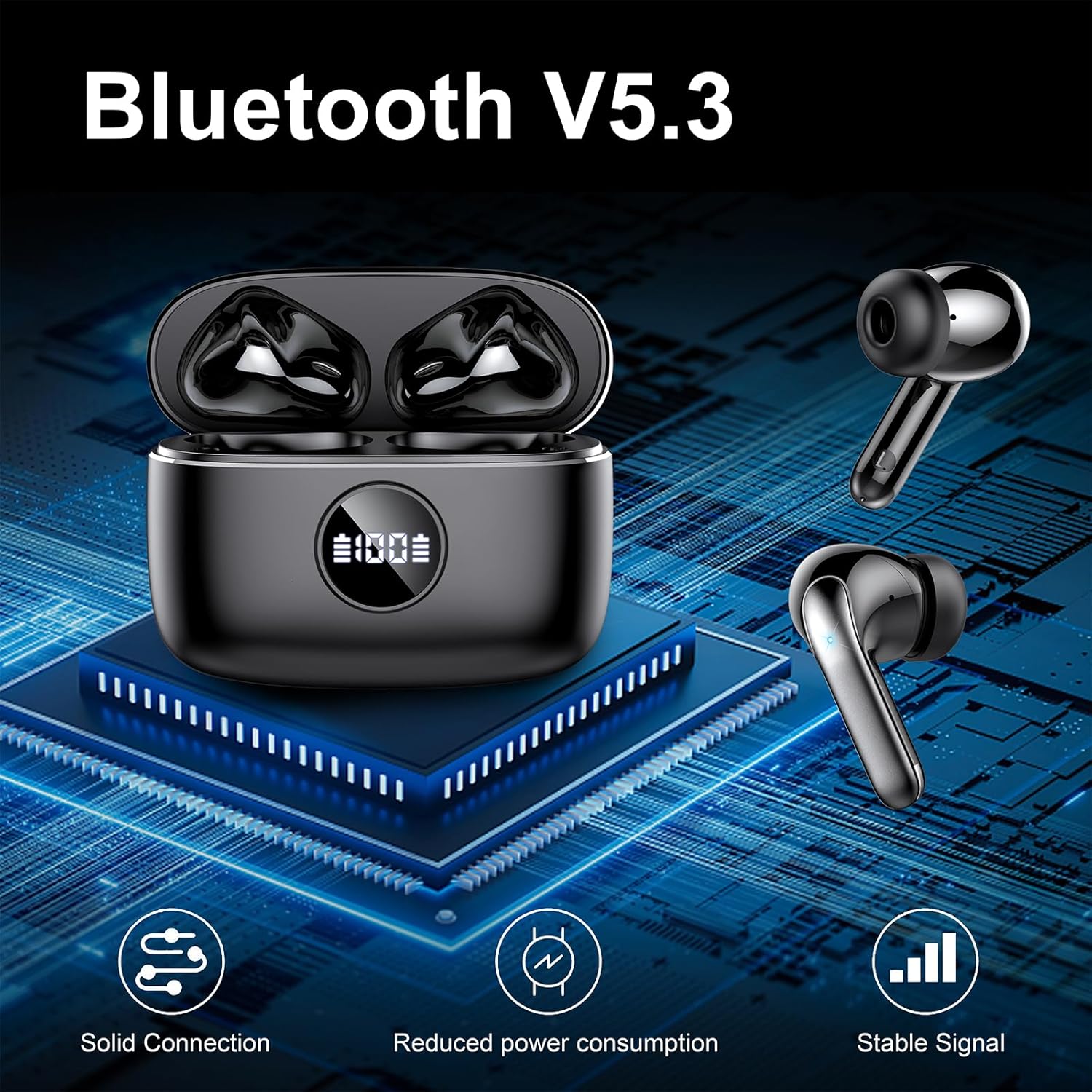 Die drahtlosen Ohrhörer verwenden die fortschrittlichste Bluetooth 5.3 -Technologie, die bis zu 2x eine schnellere Übertragungsgeschwindigkeit und eine stabilere Verbindung ohne Verzögerung ermöglicht. Egal, ob es sich um Spiele, Anrufe oder Sportarten handelt, Sie müssen sich keine Sorgen um Signalunterbrechungen machen. Sobald die Bluetooth -Kopfhörer zum ersten Mal angeschlossen sind, kann die Ladekoffer geöffnet werden, um eine Verbindung zu Ihrem Gerät herzustellen.