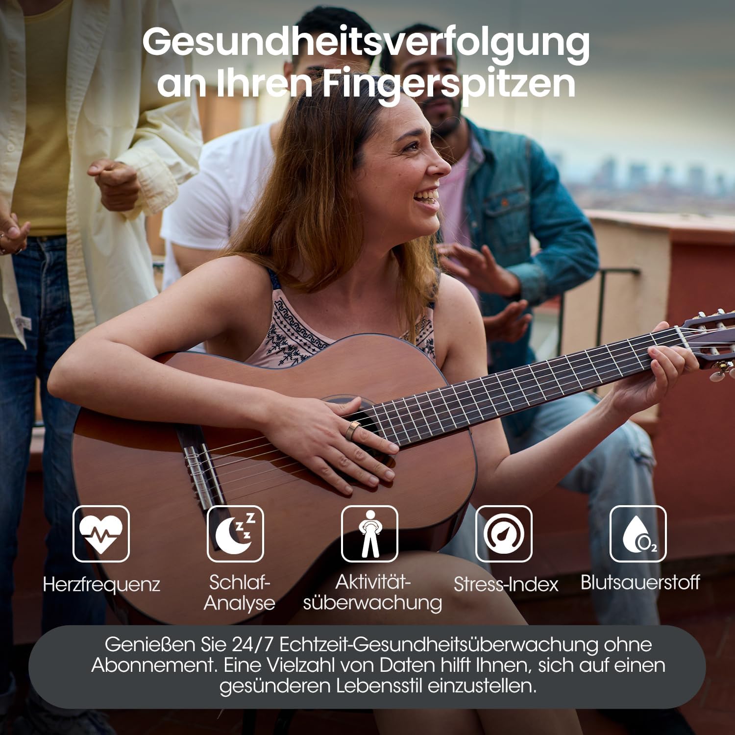 Der Gesundheitsbegleiter Ihrer Träume: Dieser intelligente Ring verwendet fortschrittliche Sensoren und Algorithmen, um die Herzfrequenz, den Blutsauerstoff, den Schlaf und den Stress in Echtzeit rund um die Uhr zu überwachen, sodass Sie Ihre körperliche Verfassung jederzeit verstehen. Die Schlafüberwachungsfunktion identifiziert Schlafzustände, einschließlich Wachsamkeit, tiefem Schlaf und leichtem Schlaf, um gute Schlafgewohnheiten zu entwickeln.
