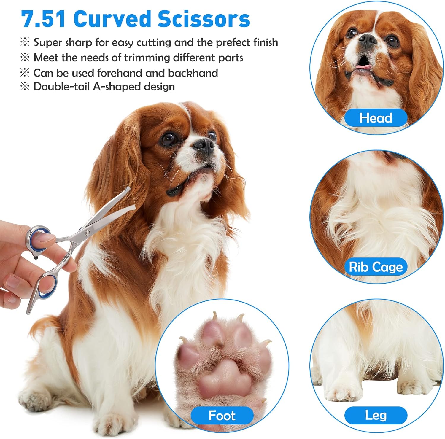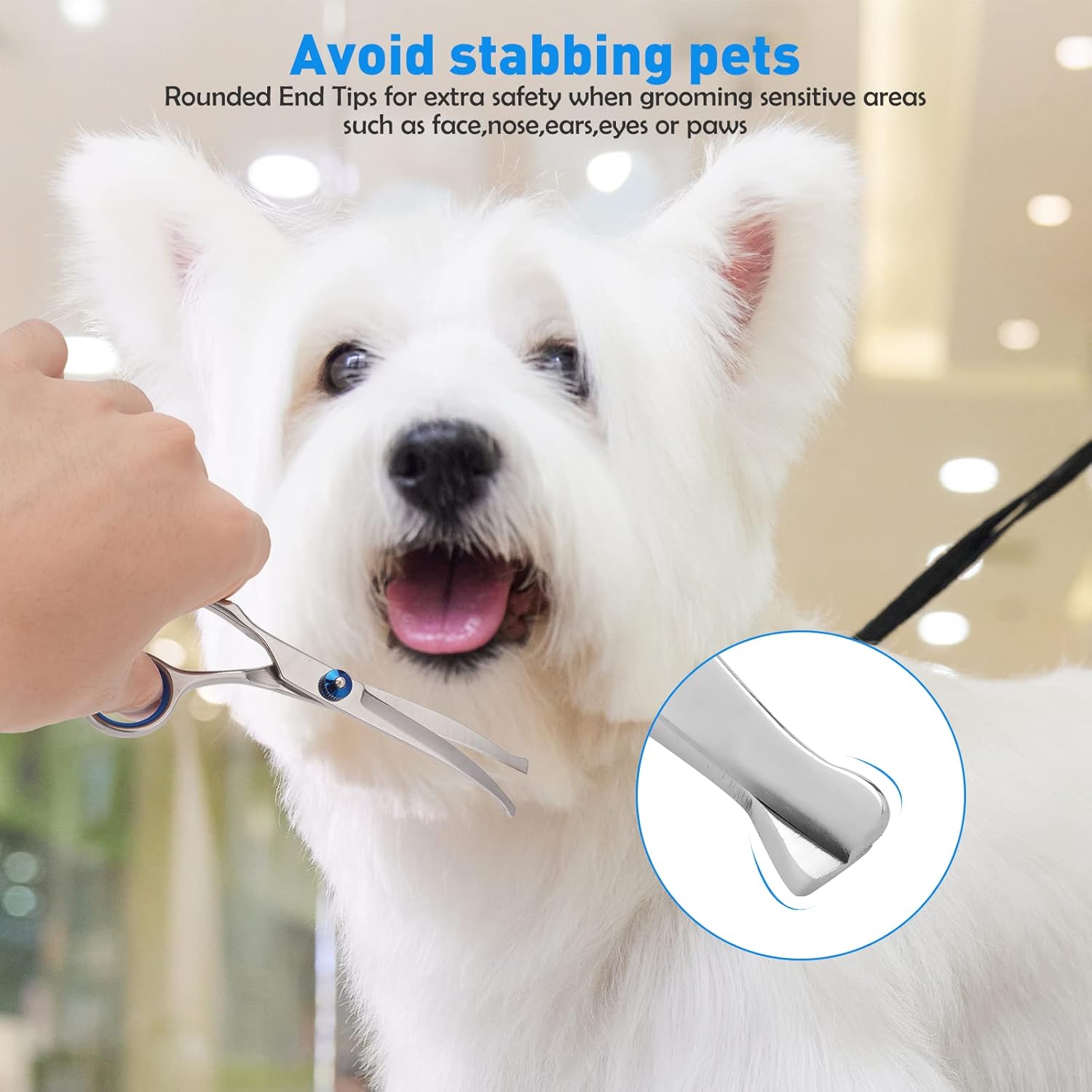 【Runde Tipps für maximale Sicherheit】 – Sie müssen sich keine Sorgen machen, dass die Haut Ihres Haustieres gestoßen wird, da alle Hundepflegescheren abgerundete Enden haben, insbesondere beim Trimmen empfindlicher Bereiche (wie Gesicht, Ohren, Augen, Nase, Pfoten)