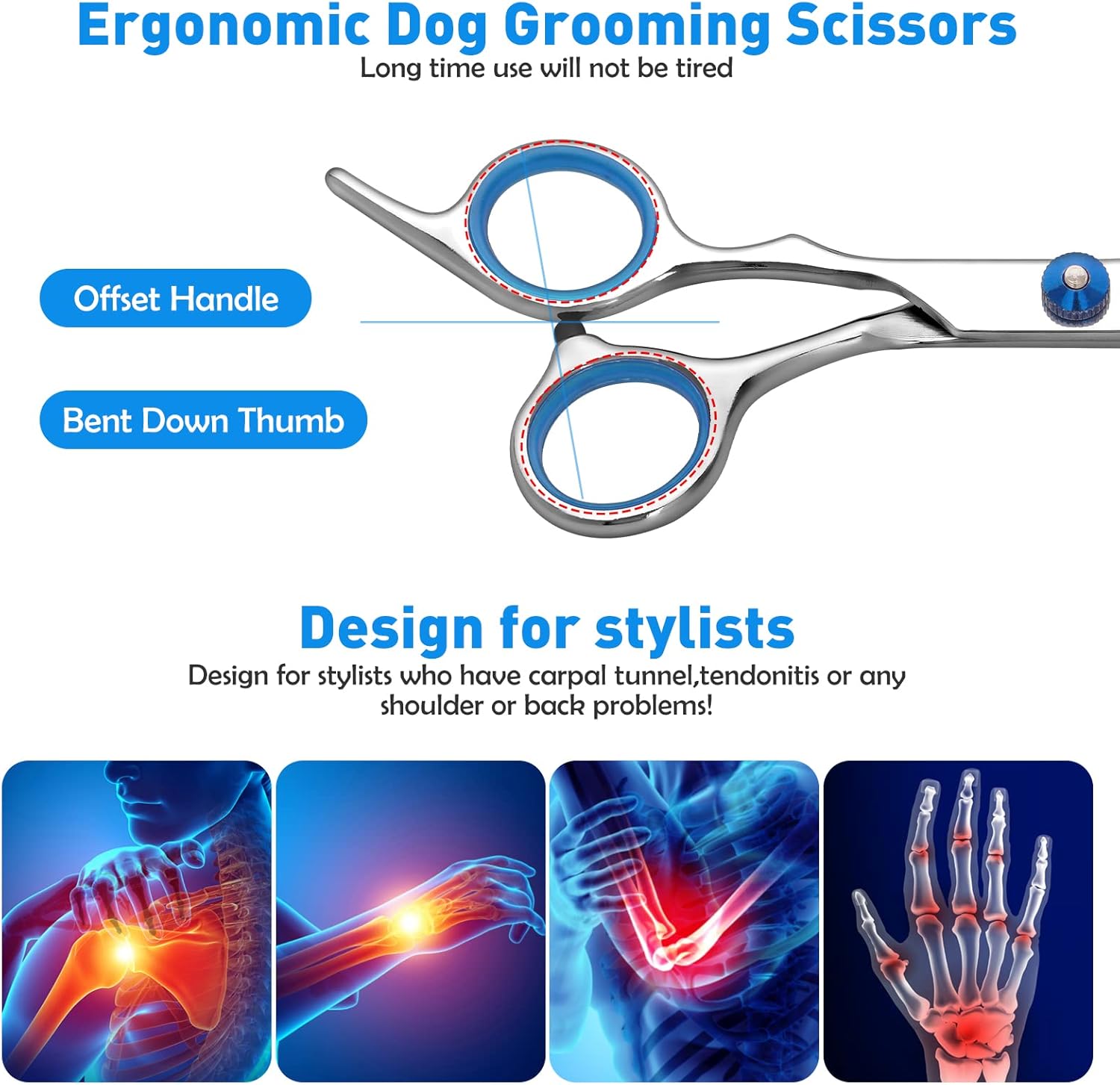 ✔ Alle Scheren sind ergonomisch entwickelt, um den Komfort zu erhöhen und die Handmüdung während des langen Gebrauchs zu verringern.
