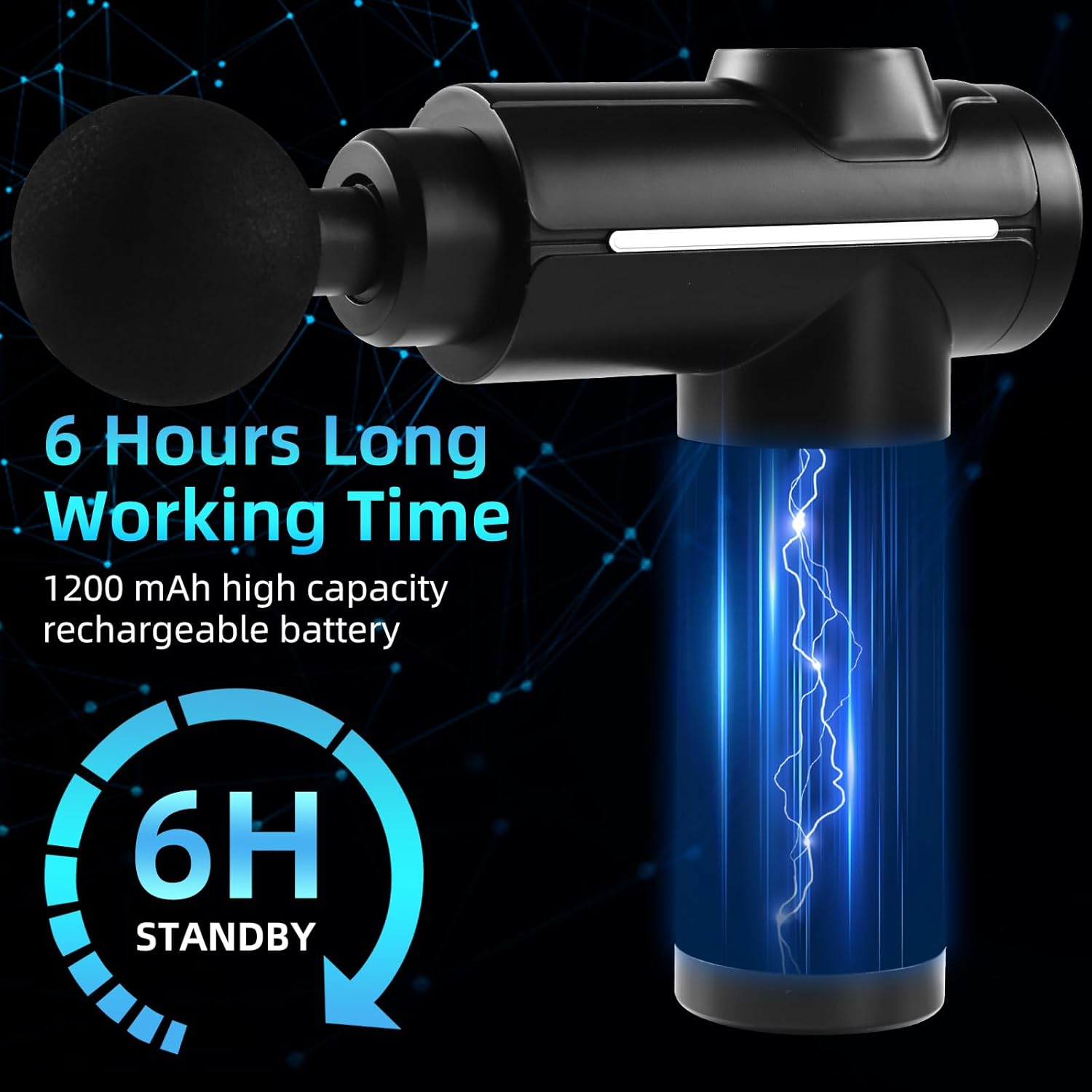 Batterie mit hoher Leistung Lithiumbatterie Automatischer Schutz für 10 Minuten Die Muskelmassagepistole ist mit einer hochwertigen wiederaufladbaren Lithiumbatterie ausgestattet, die eine stabile und dauerhafte Leistung bietet. Sie müssen nicht 3 Stunden zahlen, Sie können die Massage und die tiefe Massageerfahrung ohne Eintritt genießen. Automatischer Start nach 10 Minuten. Die Auswirkung intelligenter Schutz auf Muskeln und Betriebssystem ist der Grund für die Existenz einer langfristigen Massage.