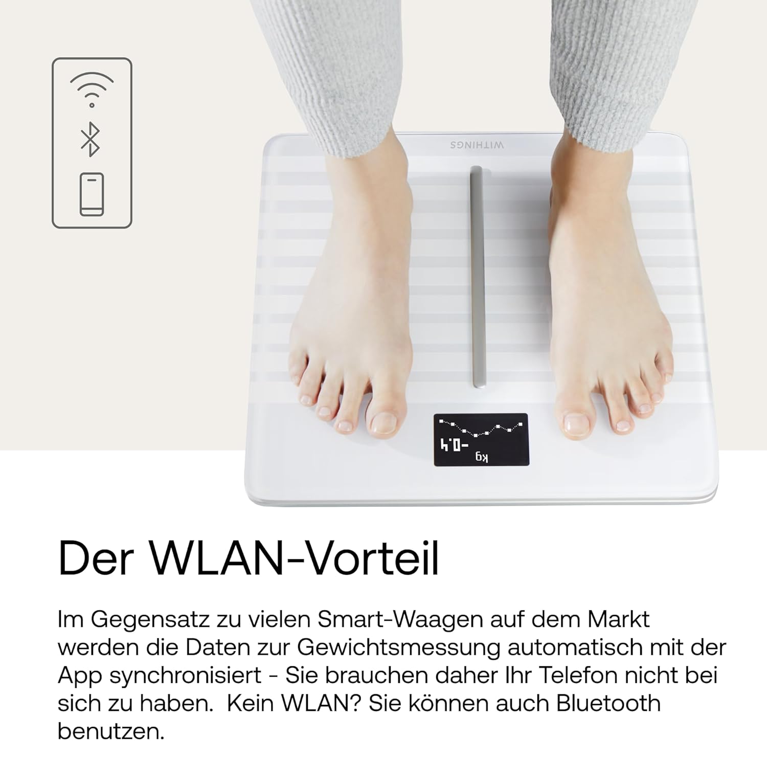 Automatische Synchronisation – Die Daten aller Wiegemomente werden automatisch über WLAN oder Bluetooth in der Health Mate -App zurückgespielt.